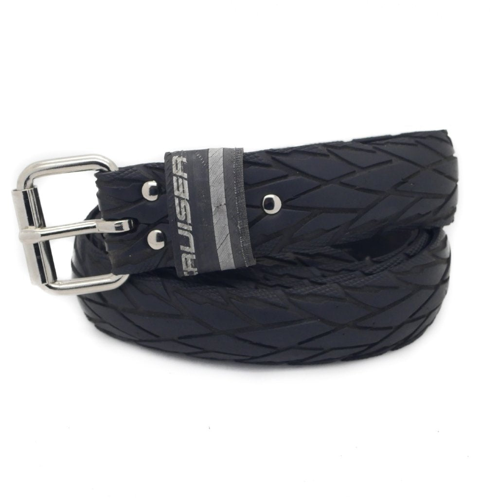 This belt is one of a kind and showcases the unique wear profile of the tire it was made from
