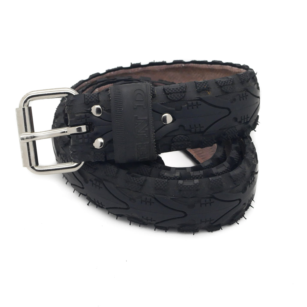This belt is one of a kind and showcases the unique wear profile of the tire it was made from